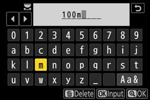 - Aby zmienić nazwę profilu, naciśnij przycisk J Informacje na temat wprowadzania tekstu można znaleźć w części „Wprowadzanie tekstu” ( 0 Wprowadzanie tekstu ). Naciśnij przycisk X , aby kontynuować po wprowadzeniu nazwy.