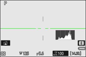 Os indicadores são exibidos em verde quando a câmera está nivelada.