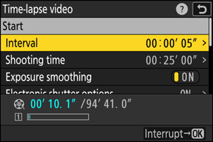 Ajuste as configurações de vídeo em lapso de tempo.