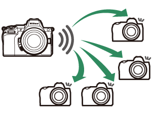 Uma câmera mestre pode ser usada para liberar os obturadores em até 16 câmeras remotas no mesmo grupo ( 0 Liberação Sincronizada ).