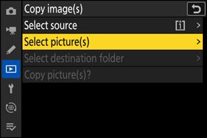 Evidențiați [ Selectare imagini ] și apăsați 2 pentru a vizualiza afișajul [ Selectare imagini ].