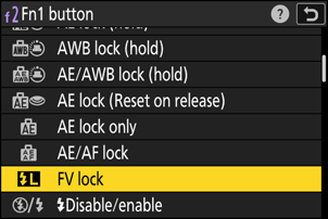 Назначьте [ Блокировка FV ] элементу управления с помощью пользовательской настройки f2 [ Польз. эл. управ. (съемка) ].