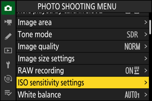 - При настройках по умолчанию изменение чувствительности ISO выполняется с шагом ¹⁄₃ EV. Размер шага можно изменить с помощью пользовательской настройки b1 [ Шаг изменения чувст. ISO ].