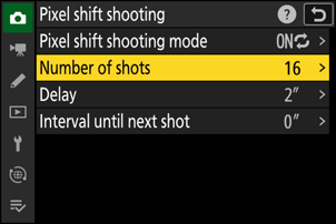 Выделите [ Съемка со сдвигом пикселя ] в меню фотосъемки и нажмите 2 .