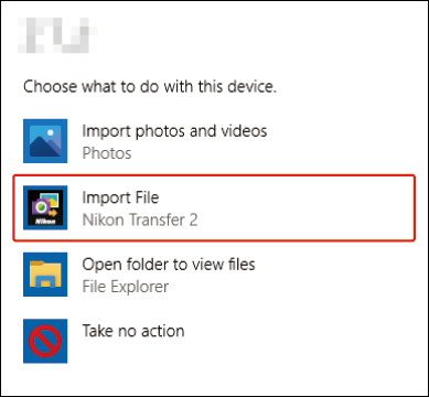 - Ak sa zobrazí hlásenie s výzvou na výber programu, vyberte Nikon Transfer 2 .