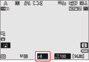 Če je omogočen samodejni nadzor občutljivosti ISO ( 0 Samodejni nadzor občutljivosti ISO ), se bo občutljivost ISO samodejno prilagodila za optimalno osvetlitev pri izbrani hitrosti zaklopa in zaslonki.