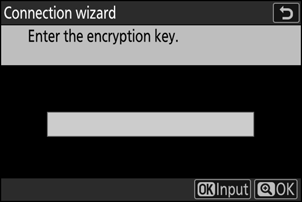 - Vnesite ime omrežja in pritisnite X Ponovno pritisnite X ; kamera vas bo zdaj pozvala, da vnesete šifrirni ključ.