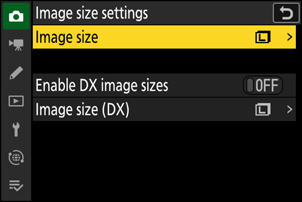 Izberite velikost fotografij, posnetih s slikovnim območjem [ DX (24×16) ], ko je za [ Enable DX image sizes ] izbrano [ ON ].