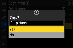 - Označite [ Yes ] in pritisnite J , da kopirate izbrane slike.