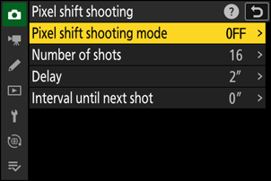 Označite [ Pixel shift shooting ] v meniju za fotografiranje in pritisnite 2 .