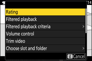 Če v video načinu pritisnete gumb i , se prikažejo spodaj navedeni elementi. Z večnamenskim izbirnikom označite želeni element in pritisnite J za ogled možnosti.