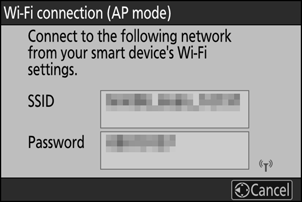 - Po vzpostavitvi povezave Wi-Fi s fotoaparatom bo pametna naprava prikazala možnosti načina dostopne točke Wi-Fi .