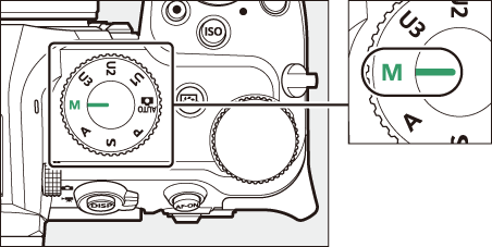 - У режиму М , компензација експозиције утиче само на индикатор експозиције; брзина затварача, отвор бленде и ИСО осетљивост се не мењају. Стварна експозиција се не мења.