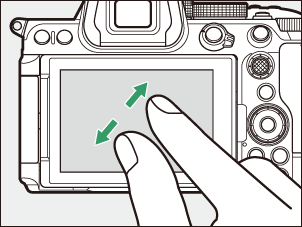 Када је [ ON ] изабрано за прилагођену поставку ф4 [ Fn na dodir ] > [ Omogući/onemogući Fn na dodir ], можете да користите контроле на додир на монитору да бисте подесили подешавања док кадрирате слике у тражилу.