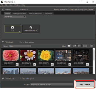 - NX Studio Nikon Transfer 2 bileşeni başlayacaktır. Nikon Transfer 2 görüntü aktarım yazılımı NX Studio bir parçası olarak yüklenir.