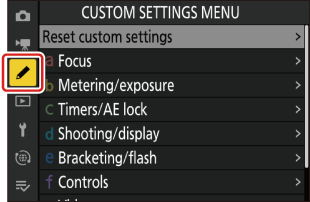 Özel Ayarları görüntülemek için kamera menülerinde A sekmesini seçin.