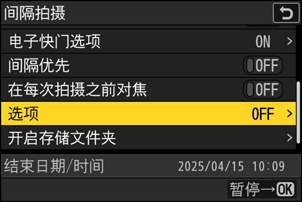 | [选项] | 将间隔拍摄和其他选项组合使用。