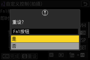 若要重设一个控制,请将其加亮显示并按下O;这样将显示一个确认对话框。加亮显示[是]并按下J可恢复所选控制的默认设定。