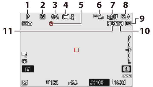 自拍 图标(q)可设定自拍延迟并选择到定时器超过时效为止拍摄的照片张数。在视频模式下,请设定用于视频录制的自拍延迟。 - 您也可通过轻触曝光补偿图标(w)调整曝光。