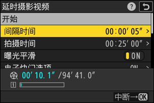 - [间隔时间]或[拍摄时间]选为[00:00'00"],
