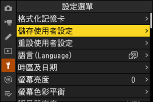 在設定選單中反白顯示 [儲存使用者設定] 並按下 2。