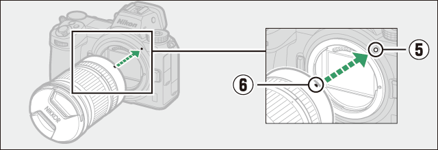 Pöörake objektiivi, nagu näidatud, kuni see oma kohale klõpsab ( u ).