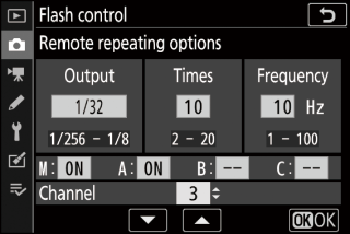 C : reguleerige välgu võimsust ning valige kanal ja välgu juhtimisrežiim.
