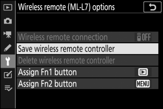 Seadistusmenüü üksus "Wireless Remote (ML-L7) Options".