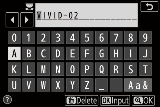 Имена Custom Picture Control могут содержать до девятнадцати символов. Новые символы добавляются в позиции курсора.