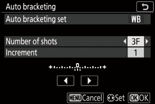 Выберите настройку или настройки с брекетингом, когда действует автоматический брекетинг.