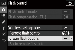 Выберите режим управления вспышкой и мощность вспышки для ведущей вспышки и удаленных вспышек в каждой группе.