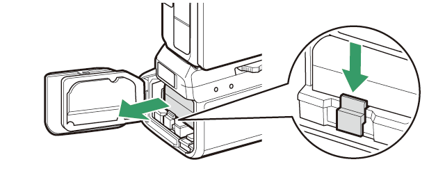 Снимите крышку батарейного отсека с нижней части камеры и поместите ее в держатель крышки батарейного отсека на MB-N11.