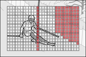 | [ Célterület ] | Válasszon egy területet a témaérzékeléshez, ha az [ Automatikus AF mező ] van kiválasztva AF mező módként. Az automatikus rögzítés akkor indul el, ha a célterületek (pontok) bármelyikében a feltételeknek megfelelő témát érzékeli a rendszer. A célterület-kiválasztással letilthatók a kép azon területei, amelyeket akadályok takarnak el, vagy amelyeket a témaérzékelés során más módon figyelmen kívül lehet hagyni, így biztosítva, hogy a kívánt téma megbízhatóbban érzékelhető legyen. |