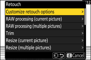 • Elementy [ Retusz ] w menu i , których nie można zastosować do bieżącego zdjęcia, są wyszarzone i niedostępne.