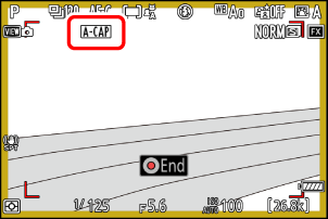 Todos os controles, exceto o meio-pressionamento do botão de disparo e os botões DISP , gravação de vídeo e O ( Q ), ficam desativados durante a captura automática. Encerre a captura automática antes de tentar ajustar as configurações da câmera.