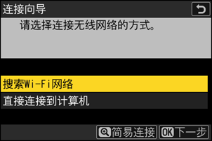 照相机将搜索附近当前有效的网络并按名称(SSID)列出网络。