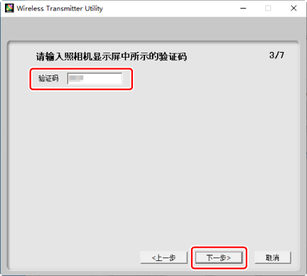 在Wireless Transmitter Utility中输入照相机显示的验证码。