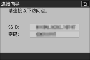屏幕中将显示照相机SSID和加密密码。
