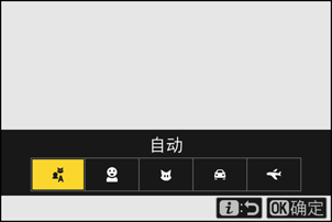 • 您可选择[自动]、[人物]、[动物]、[交通工具]和[飞机]。