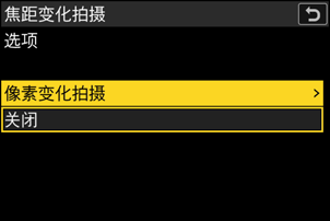 - 在照片拍摄菜单中选择[焦距变化拍摄],加亮显示[关闭]并按下J,