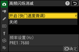 您可通过照片拍摄菜单中的[高频闪烁消减]配置频率。