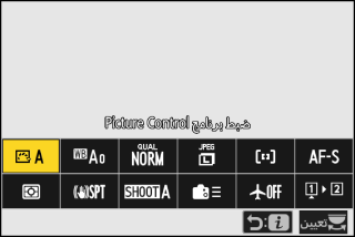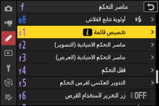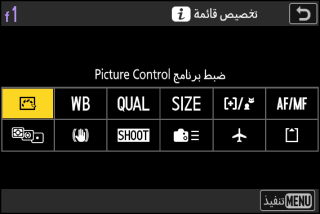 يمكن اختيار العناصر المعروضة في قائمة i أثناء التصوير باستخدام الإعداد الاعتيادي f1 أو g1 [].