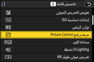 ضبط برنامج Picture Control (إعدادات برنامج التحكم بالصورة Picture Control) |