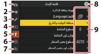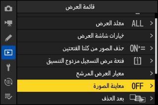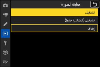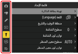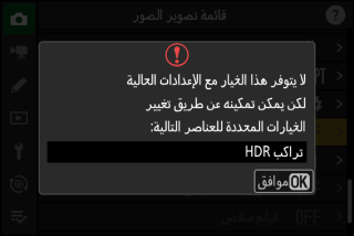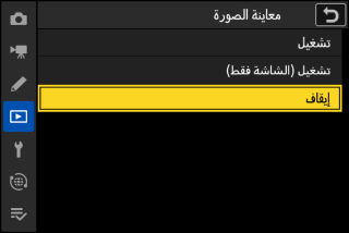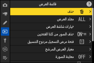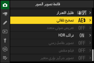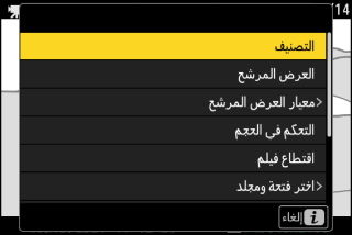 قد تكون بعض العناصر وخيارات القائمة غير متوفرة اعتمادًا على حالة الكاميرا. تُعرض العناصر غير المتاحة باللون الرمادي.