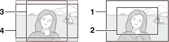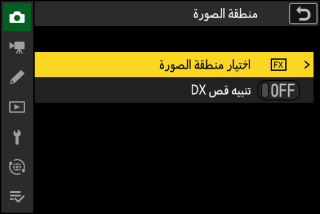 إذا تم تحديد [] لهذا الخيار في قوائم الكاميرا، فستومض أيقونة منطقة الصورة في شاشة التصوير عند تحديد DX (24×16).