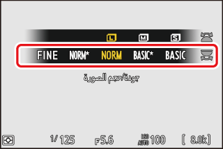 حدد خيار جودة الصورة المطلوب استخدامه عند تسجيل الصور الفوتوغرافية.
