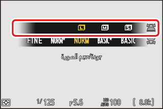 اختر حجم صور JPEG الجديدة. يمكن اختيار حجم صور JPEG من بين الخيارات []، و[]، و[].