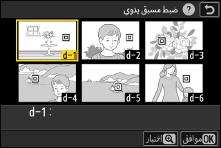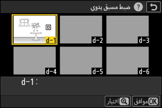 باستخدام زر الاختيار المتعدد، ظلل وجهة حفظ الضبط المسبق (من d-1 إلى d-6).