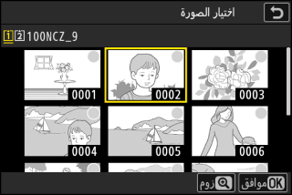 ظلل [] واضغط على 2 لعرض الصور المحفوظة على بطاقة الذاكرة الحالية.