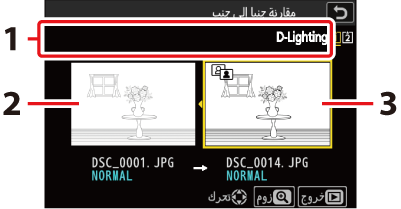 إذا كانت الصورة الحالية عبارة عن واحدة من زوج صور تم إنشاؤه أثناء اختيار [النسخ الاحتياطي] أو [] أو [] للإعداد [] في قائمة تصوير الصور، عندئذٍ يؤدي تحديد هذا الخيار إلى عرض النسخة المحفوظة على البطاقة الموجودة في الفتحة الأخرى. |